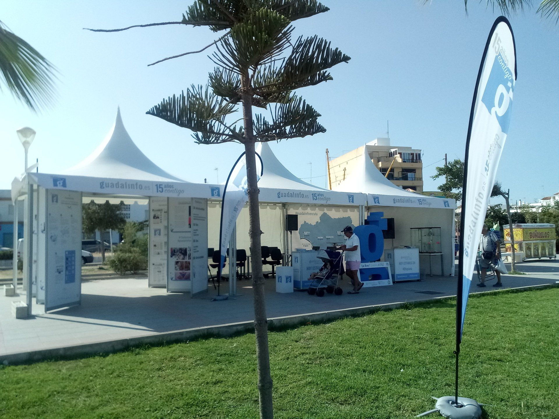 Nos ocupamos de la organización integral de todo el evento de Guadalinfo en ruta, diseñamos la imagen del evento y la plasmamos en las 3 jaimas que simulaban las instalaciones Guadalinfo. Una de las jaimas contaba con paneles modulares expositivos y en las otras dos se realizaron actividades de robotica, scratch, impresión 3D y administración electrónica.