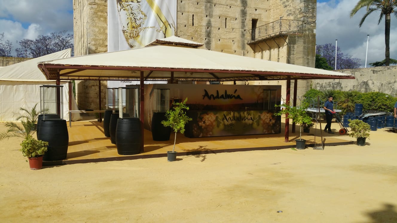 mobiliario (barriles, vitrinas y mesas), el servicio de copas y la traducción. Todo esto, acompañado de sus auxiliares y técnicos audiovisuales.